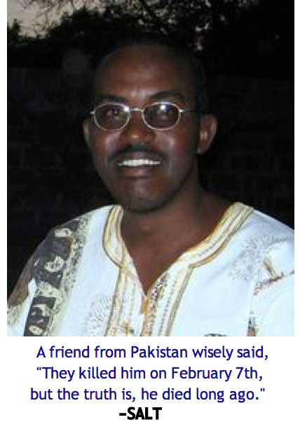 I too am saddened by this loss - very much so. At the same time I rejoice that our brother is in the arms of El-Shaddai. What could be better? Oh that we would honor his memory AND his LORD by loving our enemies. Is it like Jesus to shame all Somalis for the behavior of some? I understand the anger but I do not share the sentiments of our anonymous friend who finds all Somalis to be Islamic fundamentalists. There are some, to be sure, and there are some suras in the Qur'an that seem to support their behavior. But other suras call for Muslims to consider their Christian neighbors as closest of friends and most Somalis I know chose to focus on these suras. To show grace in times like these is the Way of the Master, Jesus. May we do the same.